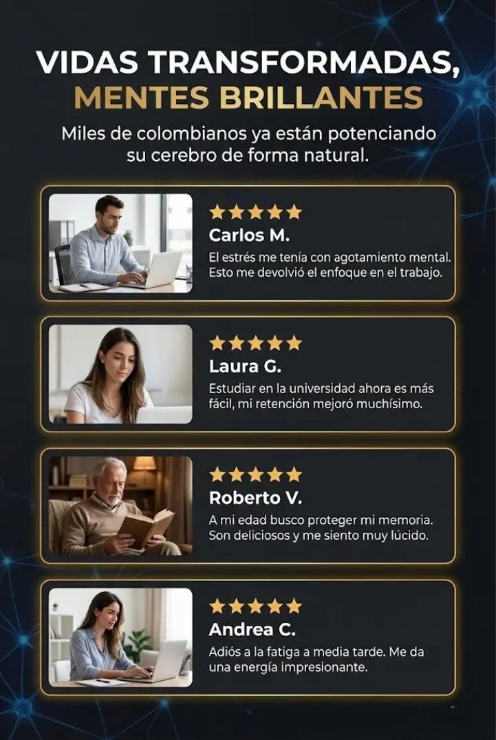 A diferencia del café o los energéticos, no actúa estimulando artificialmente tu sistema nervioso. Nutre y regenera tus neuronas para que funcionen mejor por sí solas. Los beneficios no desaparecen de golpe al pausarlo porque no son artificiales, son el resultado de una mejora real en tu cerebro.
